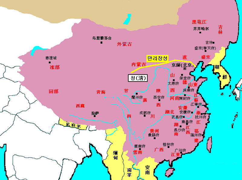 청(淸)나라가 중국 역사상 가장 큰 영역을 차지하게 되었고,