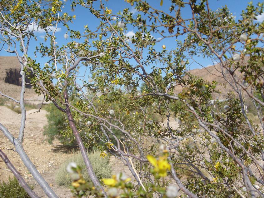 Å©·¹¿À¼Ò¿ìÆ® ( Creosote Bush ) ³ª¹« °³¿ä ¶ó½ºº£°¡½º ÀαÙÀÇ »ç¸·¿¡ Ǫ¸¥»öÀ» ¶ì°íÀÖ´Â Àâ¸ñÀº ´ëºÎºÐ ÀÌ ³ª¹«ÀÌ´Ù. ²ÉÀº ÁÖ·Î 5¿ù¿¡ ÇǴµ¥, ¶¥¼Ó¿¡ ¹°±â°¡ ÀÖ´Â °÷¿¡¼´Â ³âÁß ²ÉÀÌ ÇÉ´Ù. ÀÌ ³ª¹«ÀÇ ±×´ÃÀº ÀÌ¿ë ¹æ¹ý ¿øÁֹΠÀεð¾ðµéÀº ²ÉÀ» µû¼ ¼úÀ» ´ãÀ»·Á°í ÇØµµ