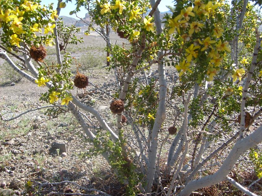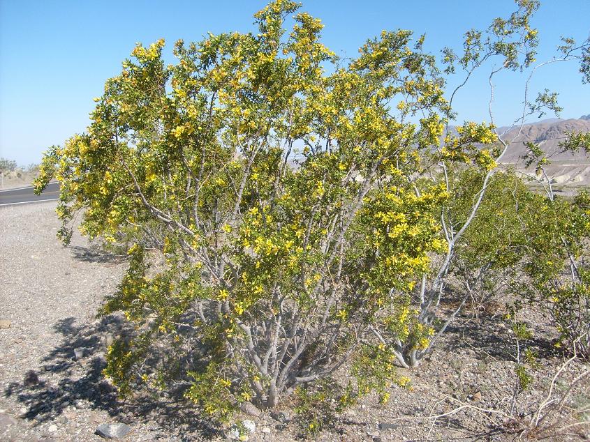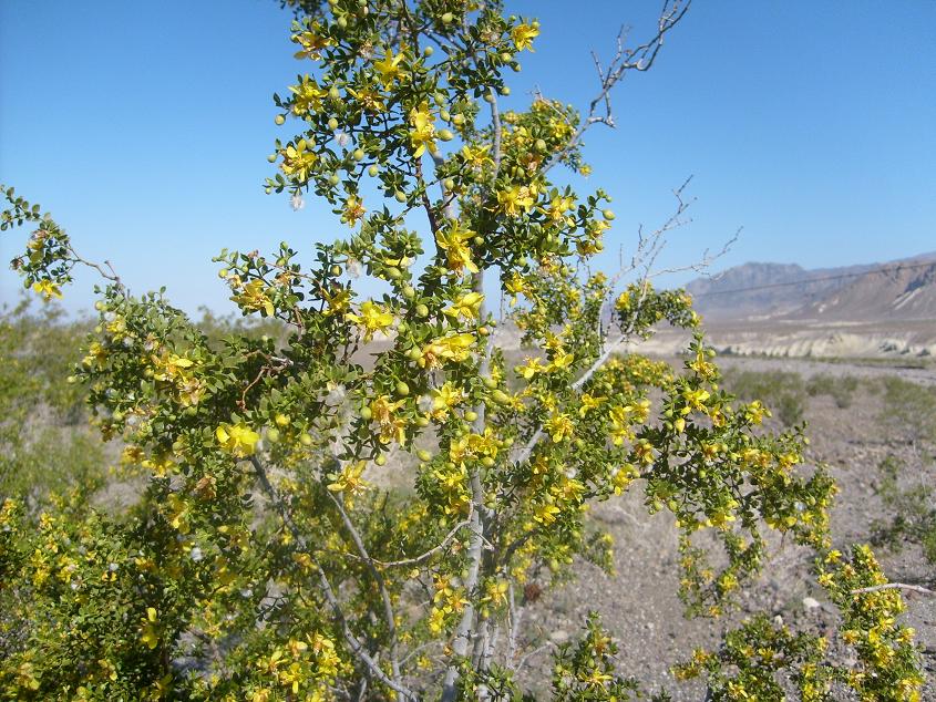 Å©·¹¿À¼Ò¿ìÆ® ³ª¹«( Creosote Bush )¿¡ ²ÉÀÌ ÇǾî ÀÖ´Â ¸ð½À