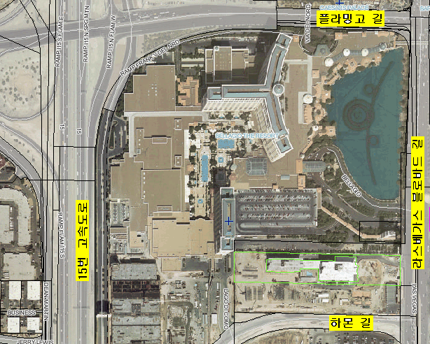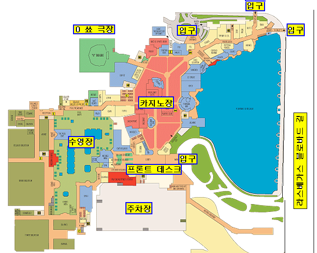 씨저스 팔라스 호텔 쪽에서 걸어서 쑈핑센터를 통해서 들어 가는 방법등이 있다.